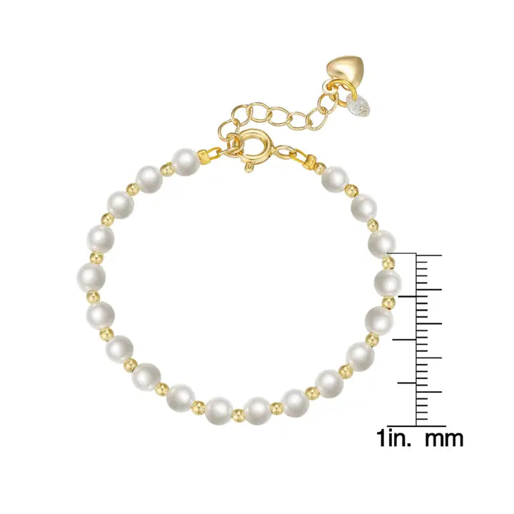 This charming bracelet for babies features imitation pearls and gold ball beads.