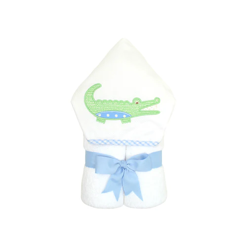 Our everykid towels are ideal for older children and also make a wonderful "grow into" baby gift. They feature a terry lined hood, which is sewn to a long side of the towel and is embellished with one of our signature appliques. Perfect for bath, beach or pool time; each towel comes ready for gift giving - rolled and tied with a beautiful grosgrain ribbon.