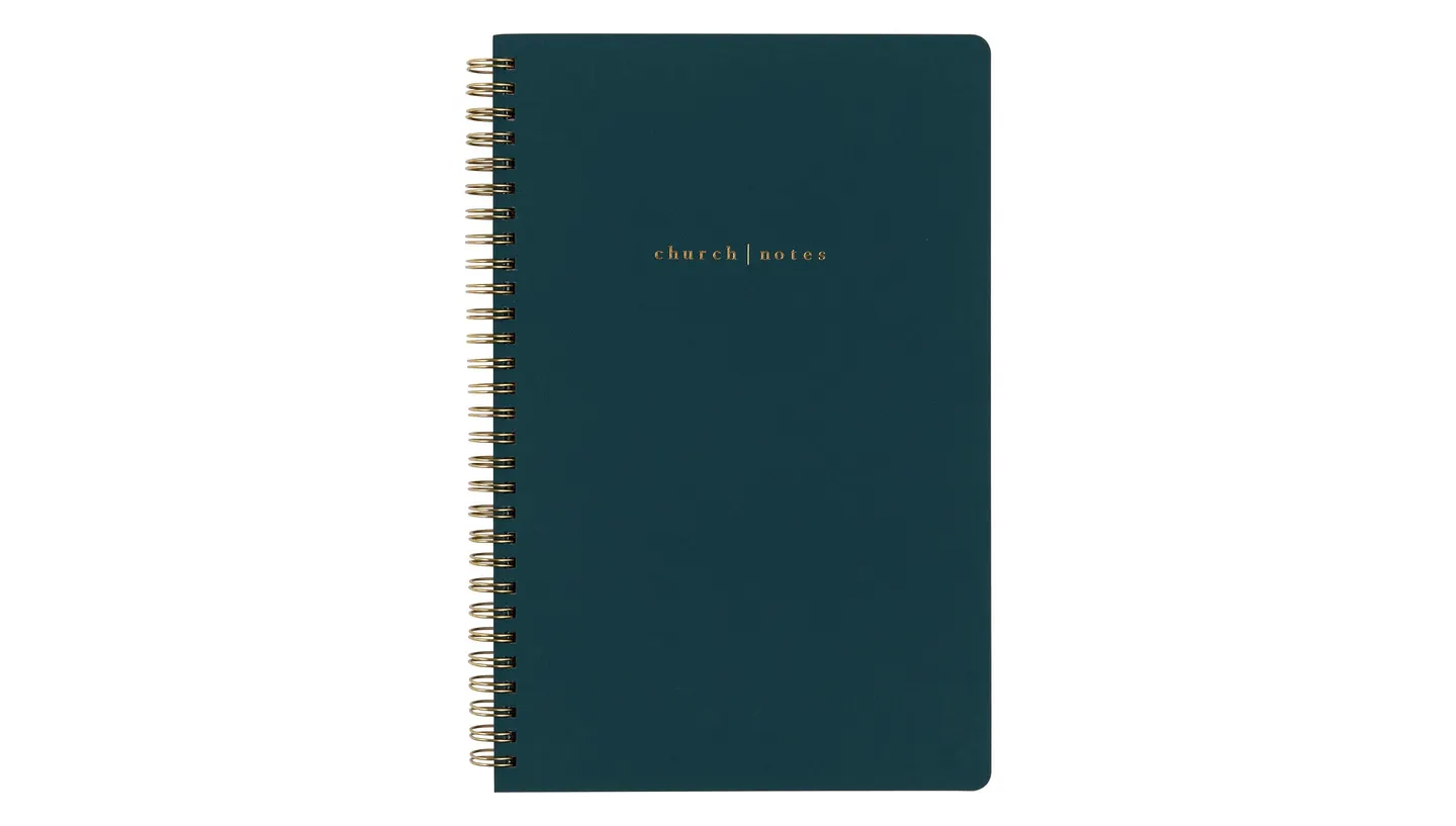 Made for taking sermon and lesson notes in church, bible study or small group, this foiled, hard cover, spiral-bound notebook was created to celebrate faith. With plenty of space for worship notes in its 150 lined pages and dedicated areas to note the date, speaker, message, and relevant verses as well as dot grid space on the back of each page, a double-sided interior pocket, and three verse art print pages, it’s the perfect confirmation, Easter or Christmas gift. Intended to aid in worshipping Christ, this journal is a staple for Christian book stores and gift shops, fostering a love for scripture and encouraging new growth in Jesus.