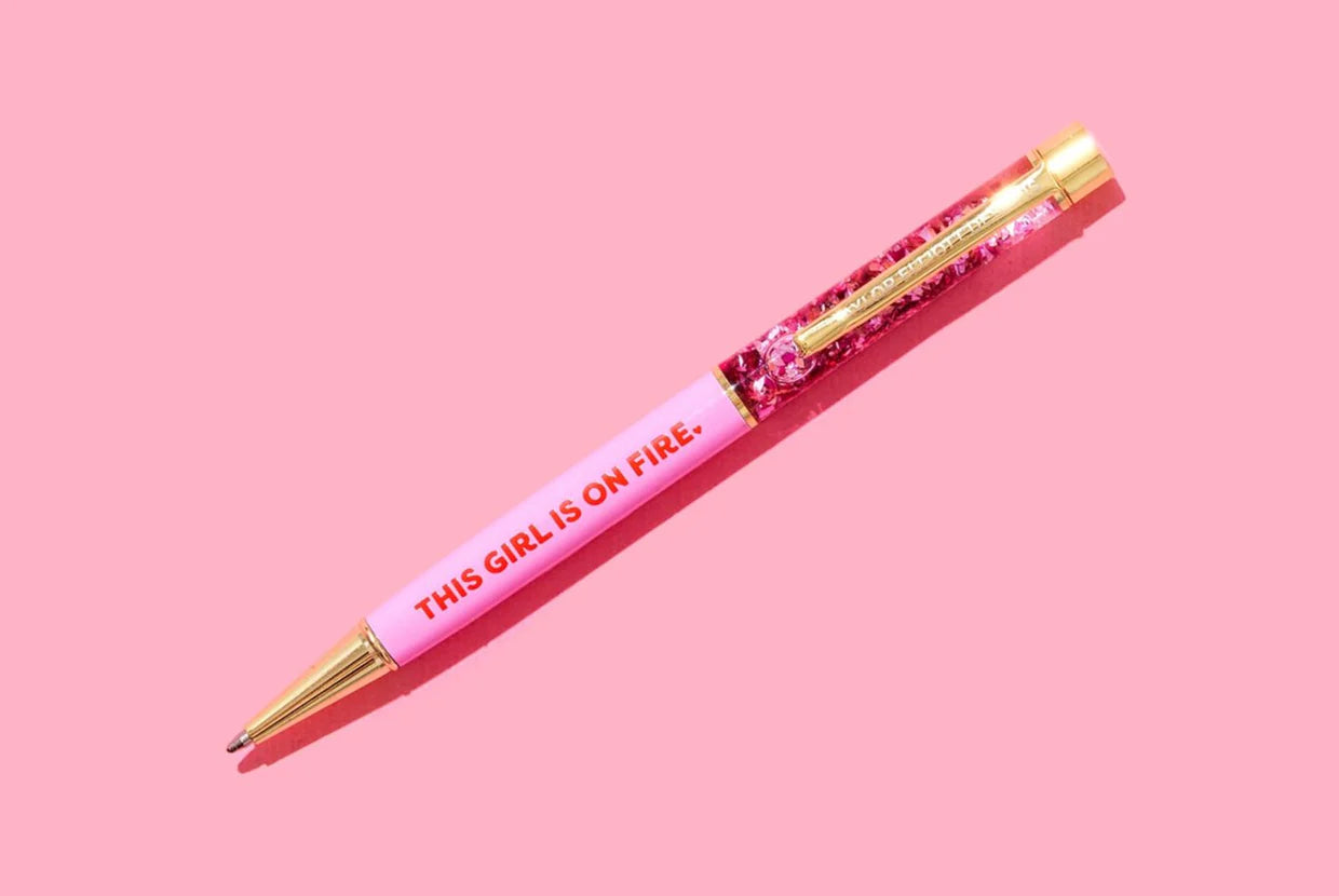 Make life a little more fun with our Confetti Pens! Filled with colorful confetti, adorned with gold metal accents and including the phrase "This Girl Is On Fire", they look as beautiful as they write.