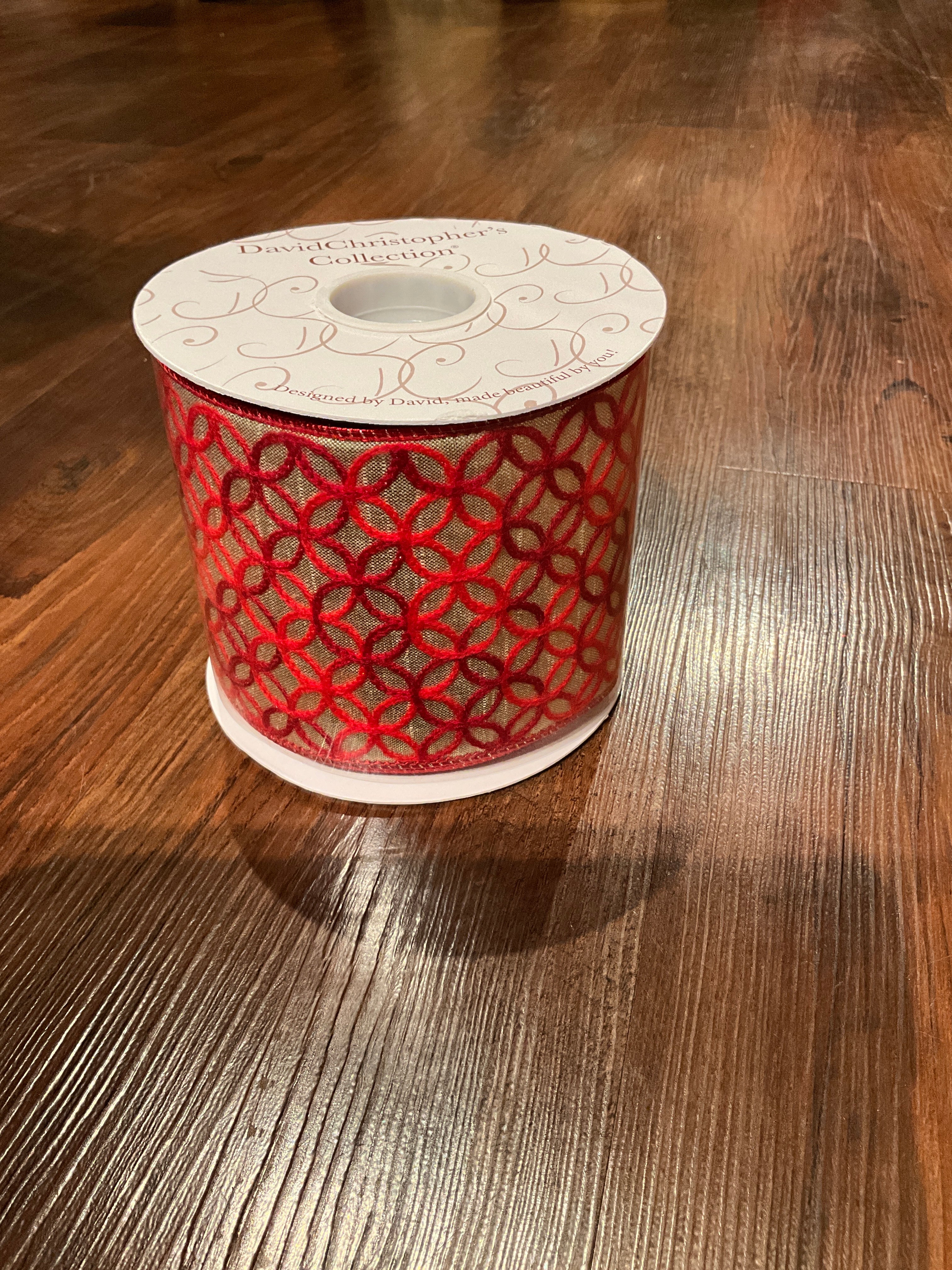 4" Red Chain Gold Metallic Dupioni Ribbon