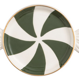 peppermint shaped tidbit plates with hand-painted gold rims.