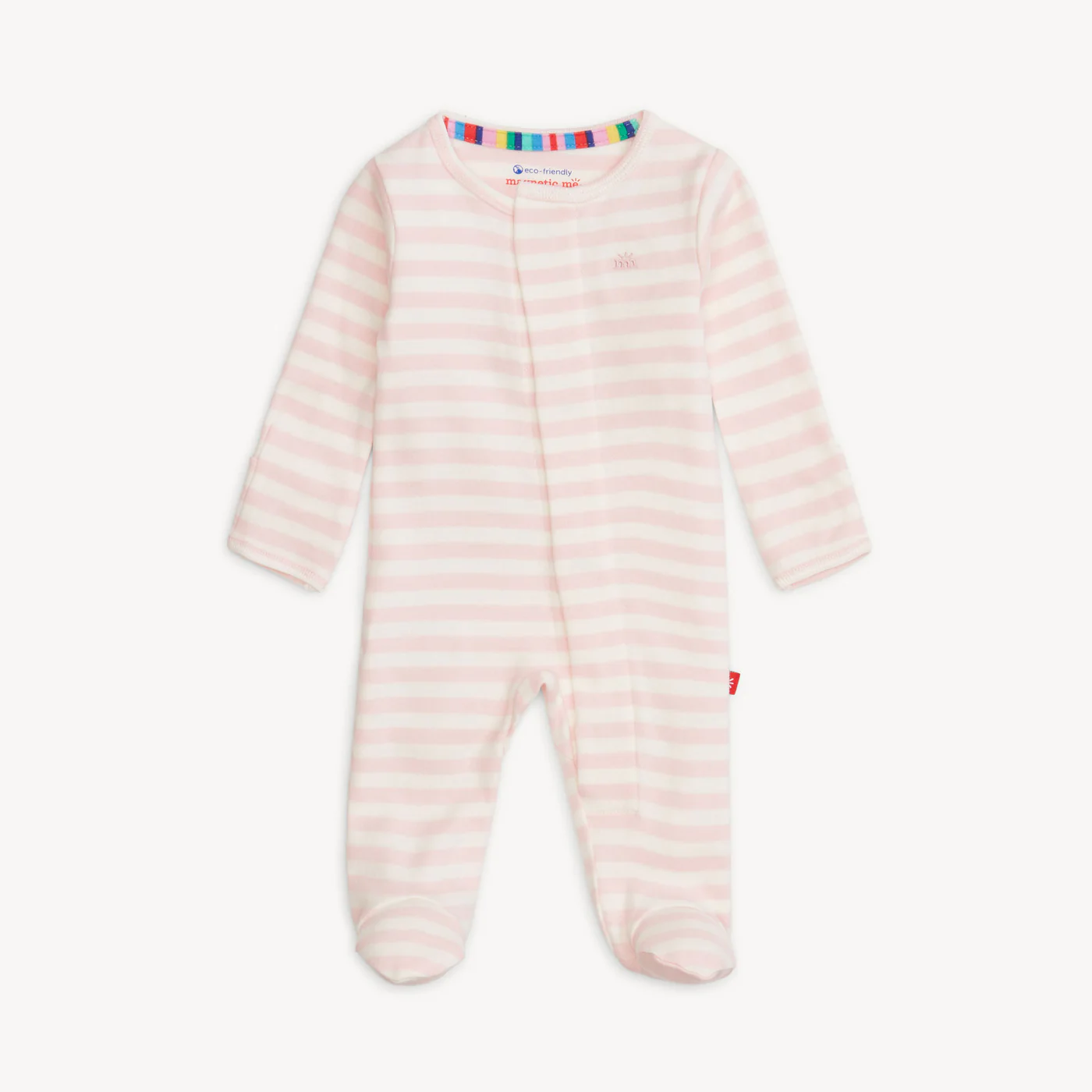 - Magnetic closures: magnets line the seam from the neck to upper thigh for sizes up to 0-3m & from neck to crotch for sizes 3-6m and up.