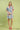 • V-neckline with striped contrast trim collar