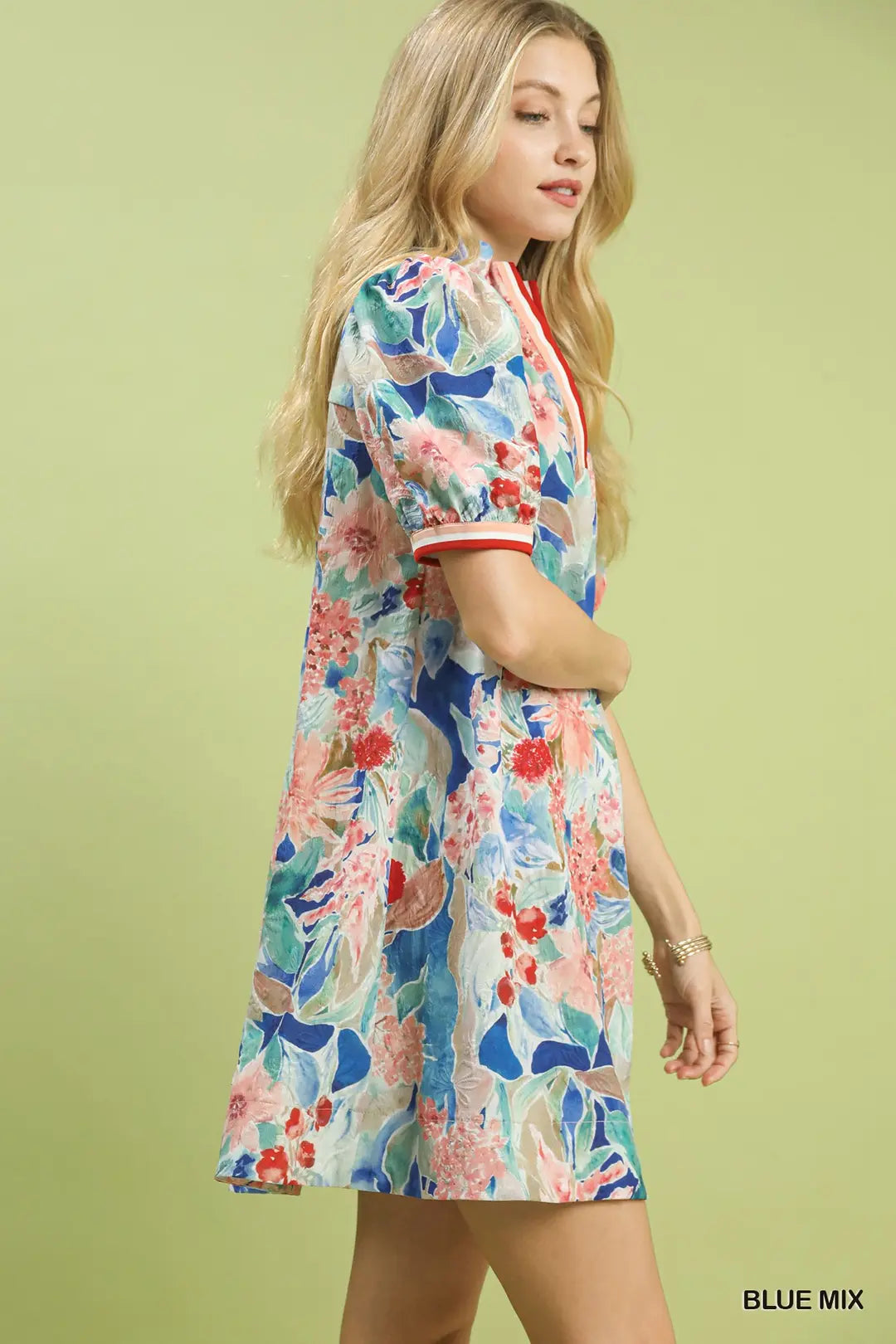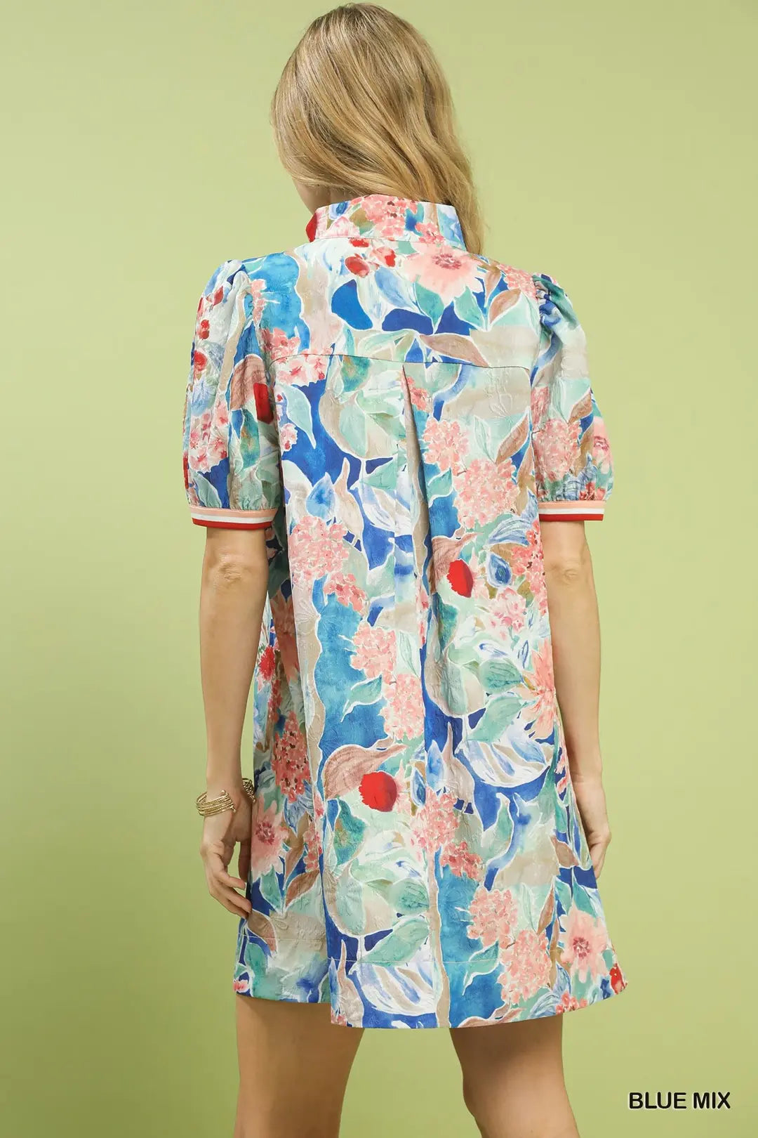 Jacquard Bloomscape High Neck Mini Dress