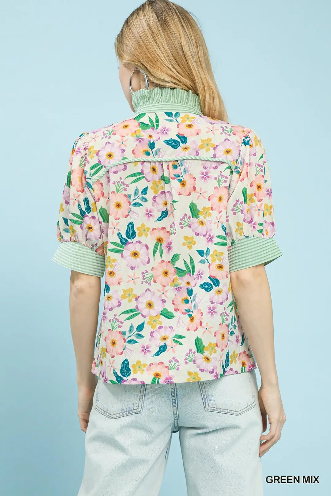 Jacquard High Ruffled Neck Top