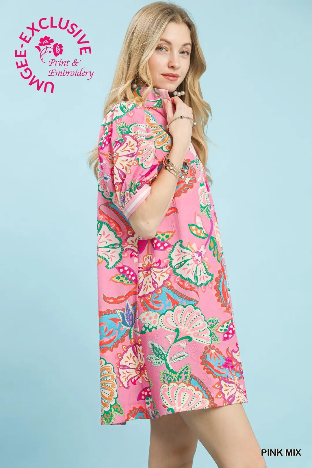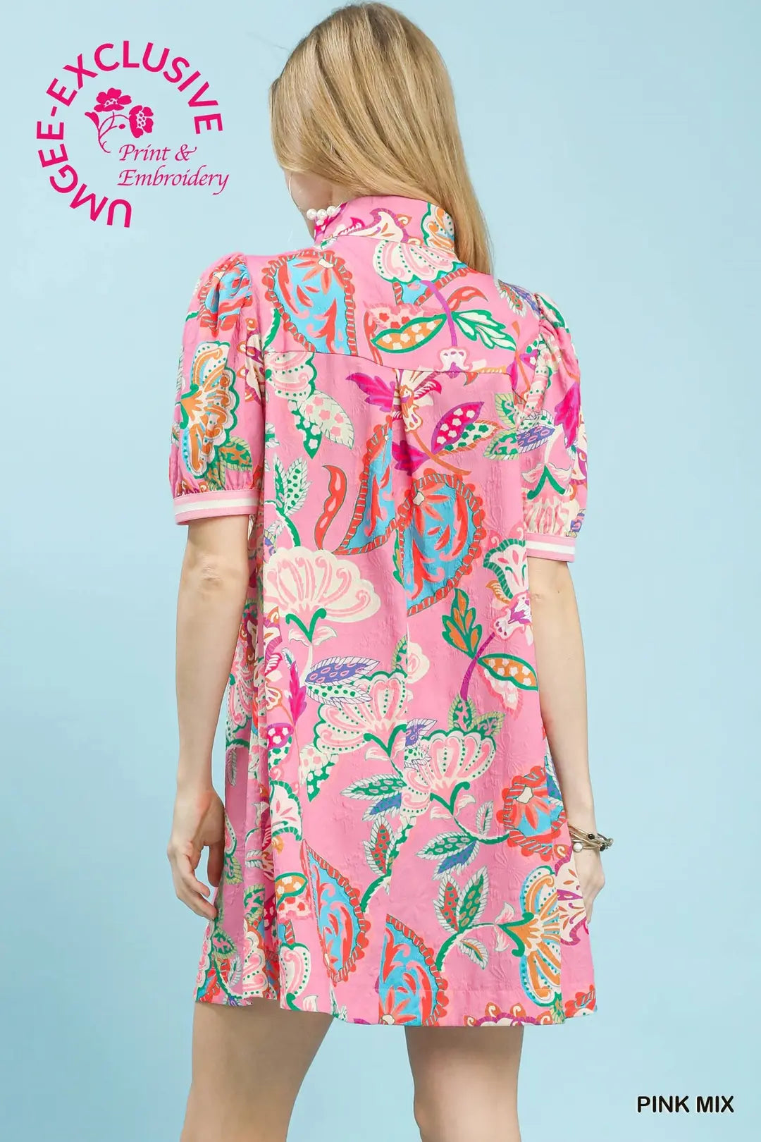Jacquard Paisley Print Puff Sleeve Tunic Dress