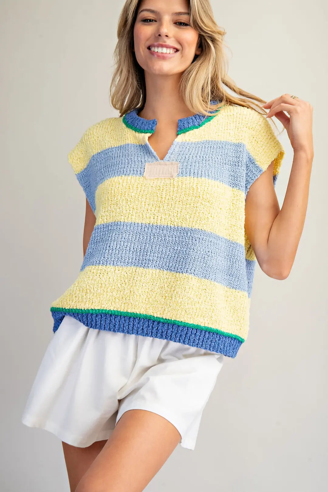 Multi Color Striped Cap Sleeve Sweater