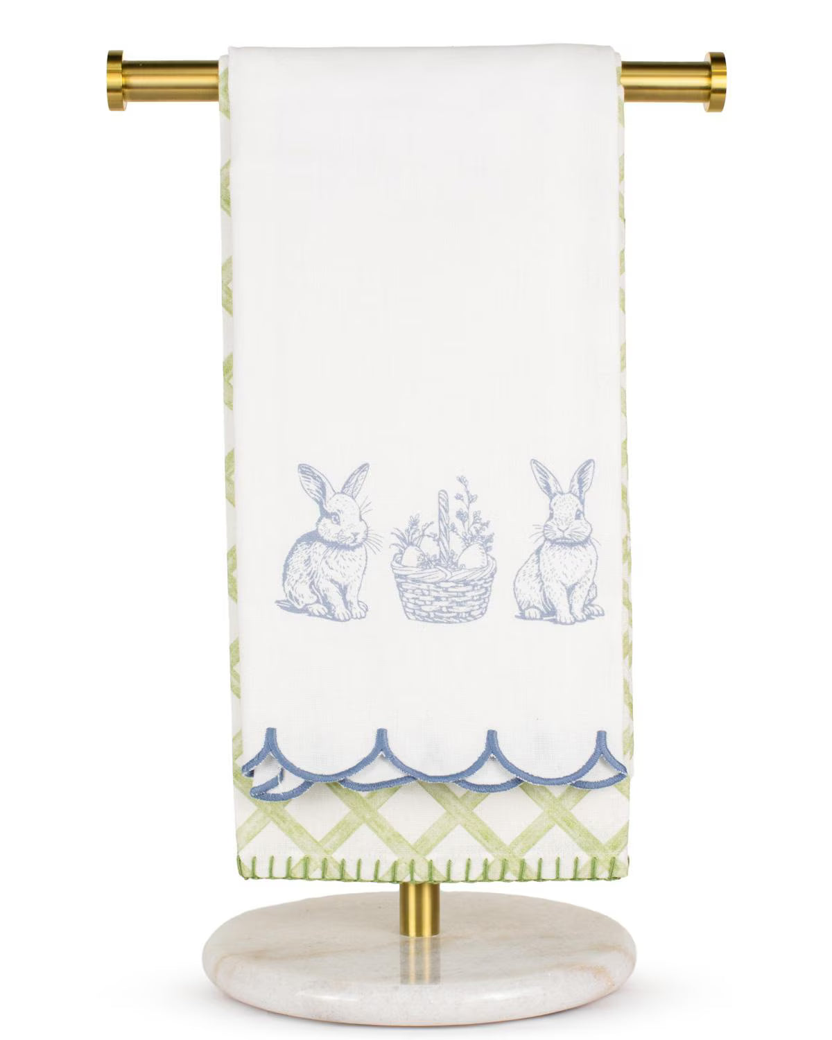 Brighten up your kitchen or guest bath with the Morgan Bunny Trellis Hand Towels. This set of two features charming bunny and trellis motifs in soft green and blue hues—perfect for adding a fresh spring touch to your home.