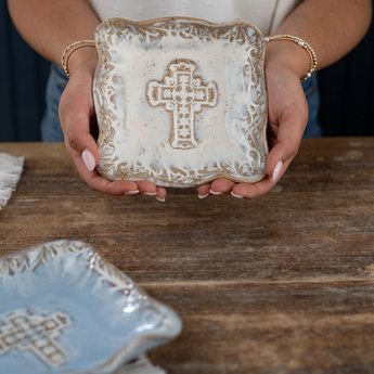 Small quantities available right now of this cross available in both Wisteria and Chantilly. Approx 5"
