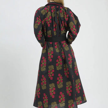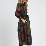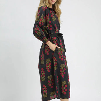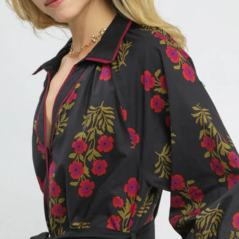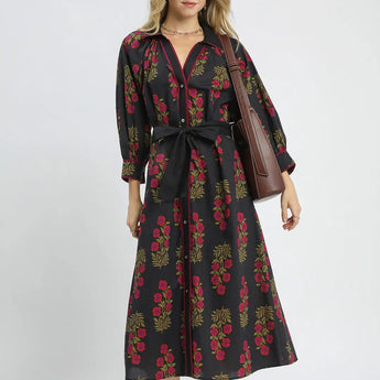 Floral Button-Front Maxi Shirt Dress with Waist Tie