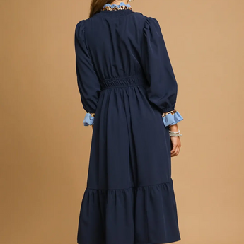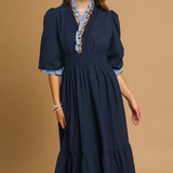 Ruffle Trim Midi Dress