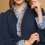 Ruffle Trim Midi Dress with Leopard Accent