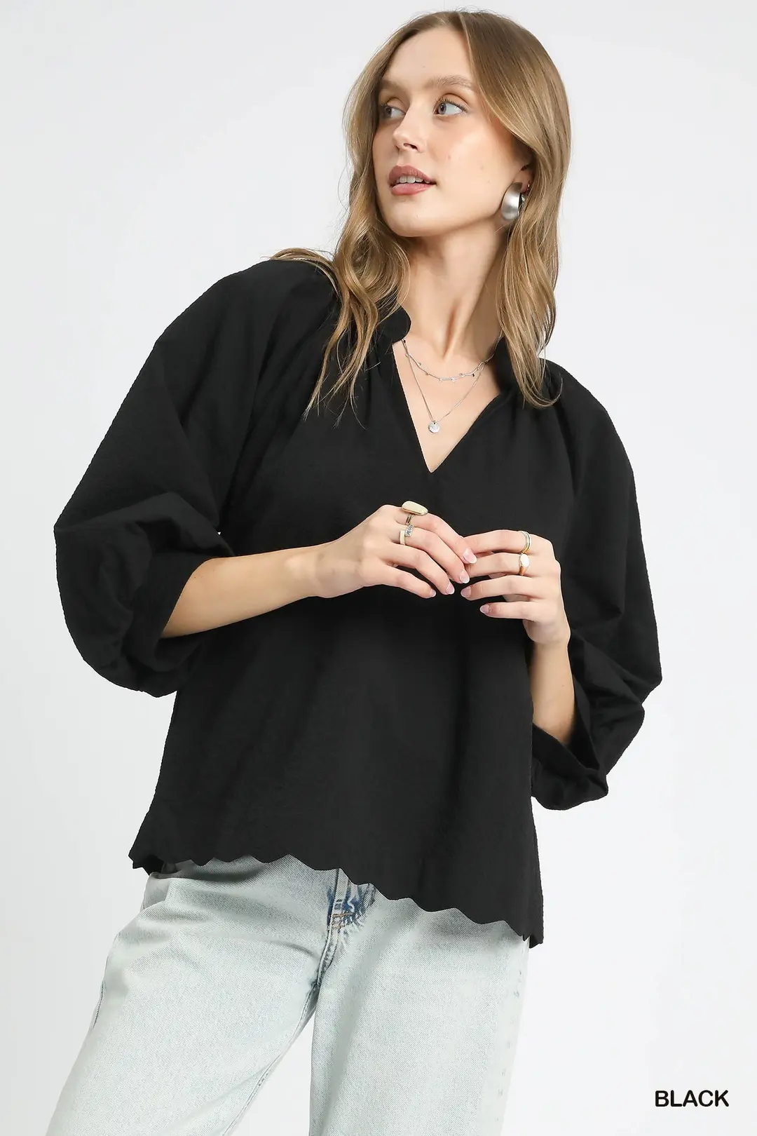• 3/4 balloon sleeves