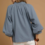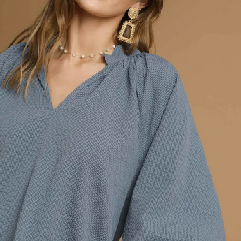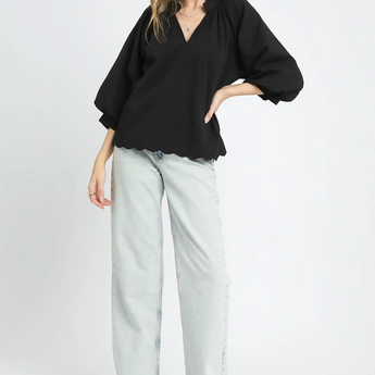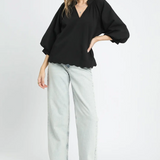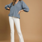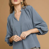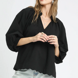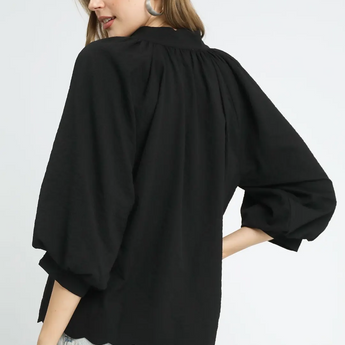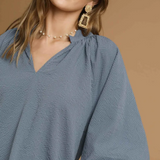 Split V Neck Top with Balloon Sleeves