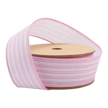 1.5" White with Pink Ticking Stripes