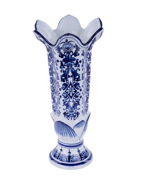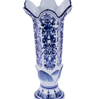 14"H X 6.75"L X 6.25"W PORCELAIN VASE BLUE/WHITE