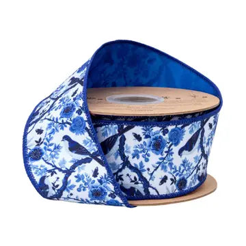 2.5" Blue and White China Birds Ribbon