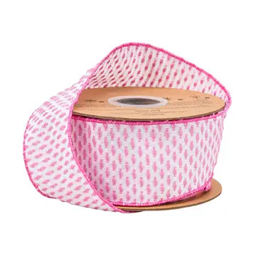 2.5" Pink/White Woven Ribbon