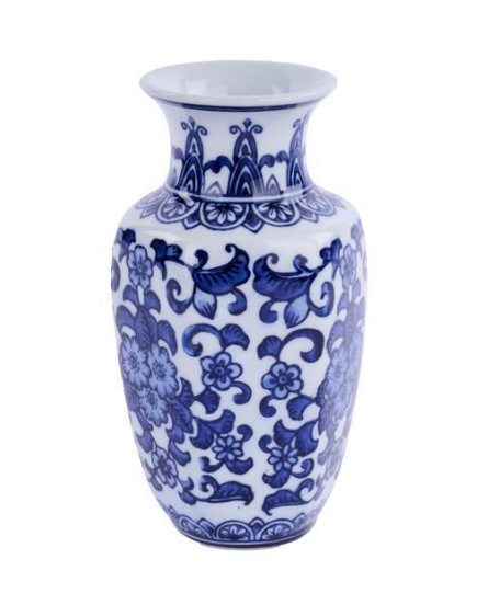 7"H X 4"L X 3.75"W PORCELAIN VASE BLUE/WHITE