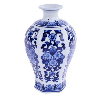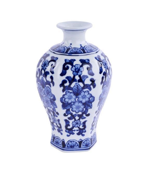 8"H X 5"L X 4.5"W PORCELAIN VASE BLUE/WHITE