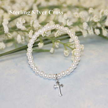 Infant Glass Pearl with Sterling Silver Cross Bracelet