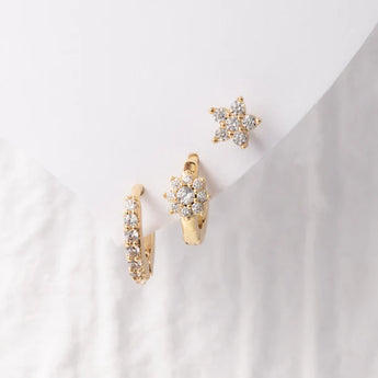 Three styles. Endless ways to shine. This curated set of 3 huggie earrings is your go-to for effortless styling. With a mix of classic, textured, and sparkly finishes, these mini hoops are perfect for stacking, mixing, or wearing solo. Lightweight and easy to wear, they bring just the right amount of shine to your everyday look.