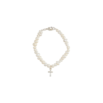 This exquisite pearl bead bracelet is a charming accessory designed specifically for toddlers aged 2T-5T. Each delicate pearl bead is carefully selected to create a timeless and elegant look that is perfect for any occasion. The bracelet features a petite metal cross charm, adding a touch of grace and spirituality to the design. The charm is crafted with attention to detail, ensuring it complements the overall aesthetic of the bracelet beautifully. For ease of wear and security, the bracelet is equipped with a reliable lobster clasp closure, making it simple for little ones to put on and take off with minimal assistance. The clasp is designed to hold the bracelet securely in place, providing peace of mind for parents. This bracelet is not only a lovely piece of jewelry but also a meaningful keepsake that can be cherished for years to come. Whether for a special event, a gift, or everyday wear, this pearl bead bracelet with a cross charm is a delightful addition to any toddler's accessory collection.