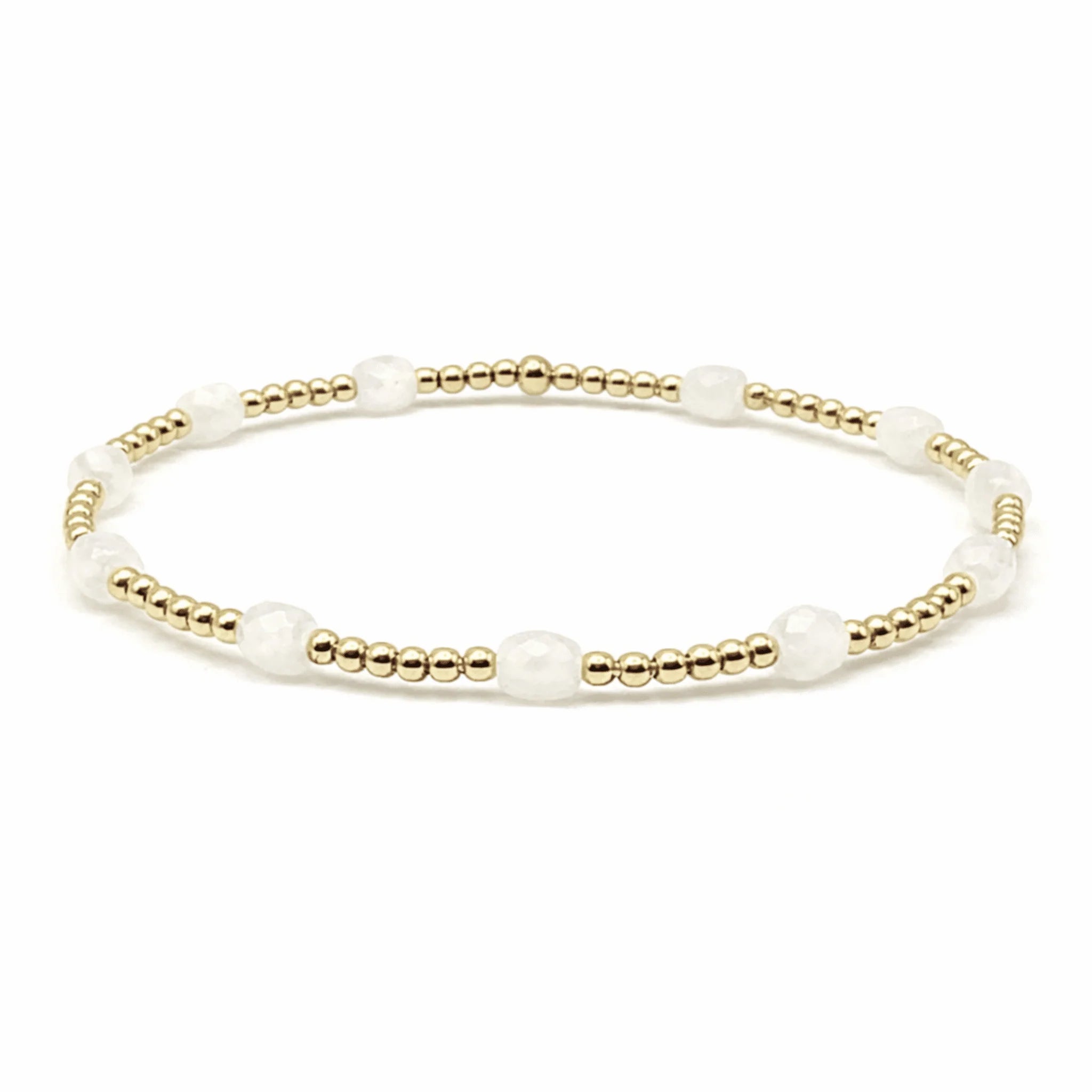 Vibrant yet soothing...like the waters of Key West. Our new collection features our long loved gold filled beads with colored glass beads. Made for stacking, why pick just one color? 14k gold-filled with glass cut beads around. Part of our erin gray waterproof bracelet collection!