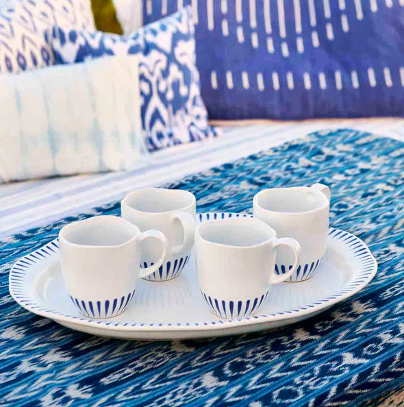 The fresh whitewash glaze and Delft blue stripes of this versatile mug exude potter's wheel charm you'll reach for time and time again, from morning coffee to tea and a good book.