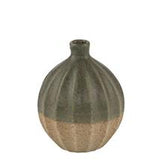 Enhance your home decor with our Sage Small Vase. This ribbed stoneware vase comes in a stylish color palette of grey, green, and tan. Its exquisite design and high-quality material provide a touch of sophistication to any room. Elevate your space with this luxurious and exclusive vase.
