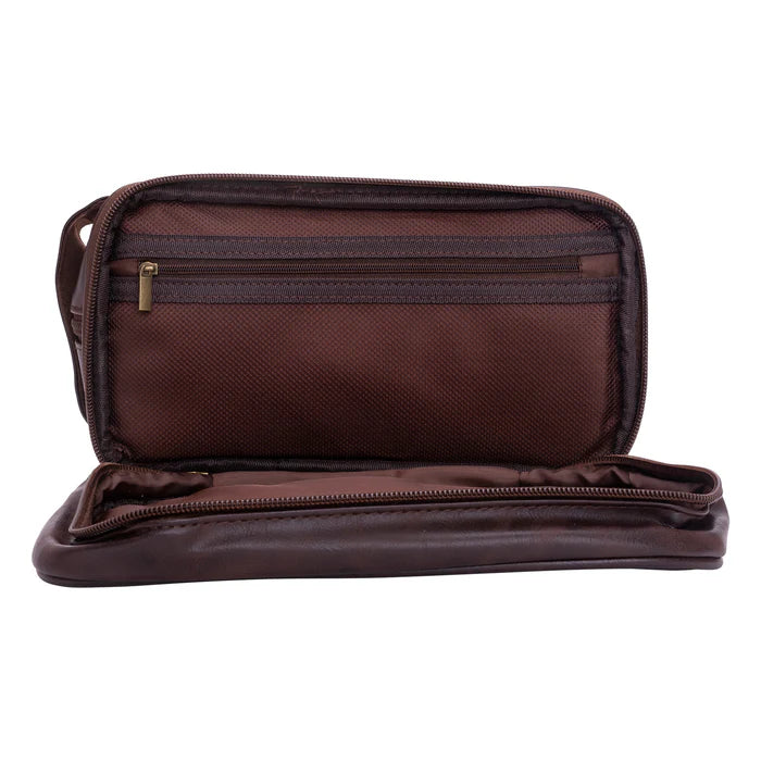 Travel in style with this sleek, modern Dopp kit, crafted from durable and sustainable materials like polyester, PVC, and vegan leather. Dominate your travels with the perfect combination of style and function!