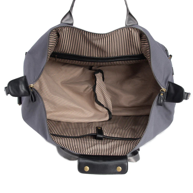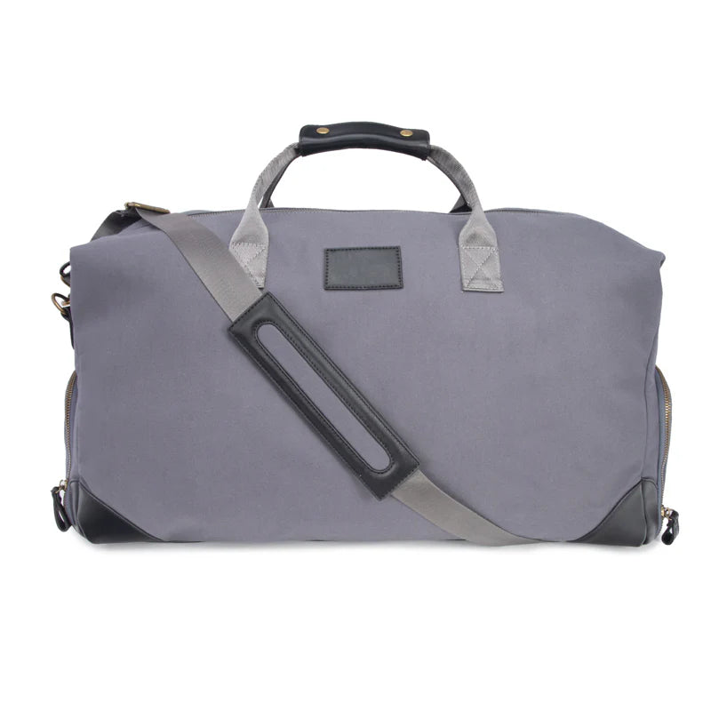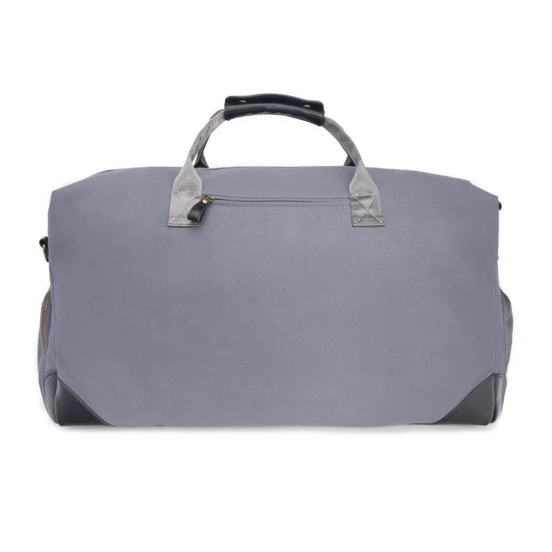 Travel in style with the Harrison Duffel Bag! This trendy bag is crafted from water-resistant cotton canvas and premium vegan leather, so it's sure to make a statement. It features an exterior zipper pocket for your phone or passport, as well as two exterior pockets for shoes and extra storage, so you'll be well prepared for any trip. Plus, the interior padded compartment can fit up to a 15" laptop and includes an interior zipper pocket to keep your essentials secure. With its 51" detachable and adjustable strap, you'll stay comfortable while carrying your bag. Get ready to explore the world!