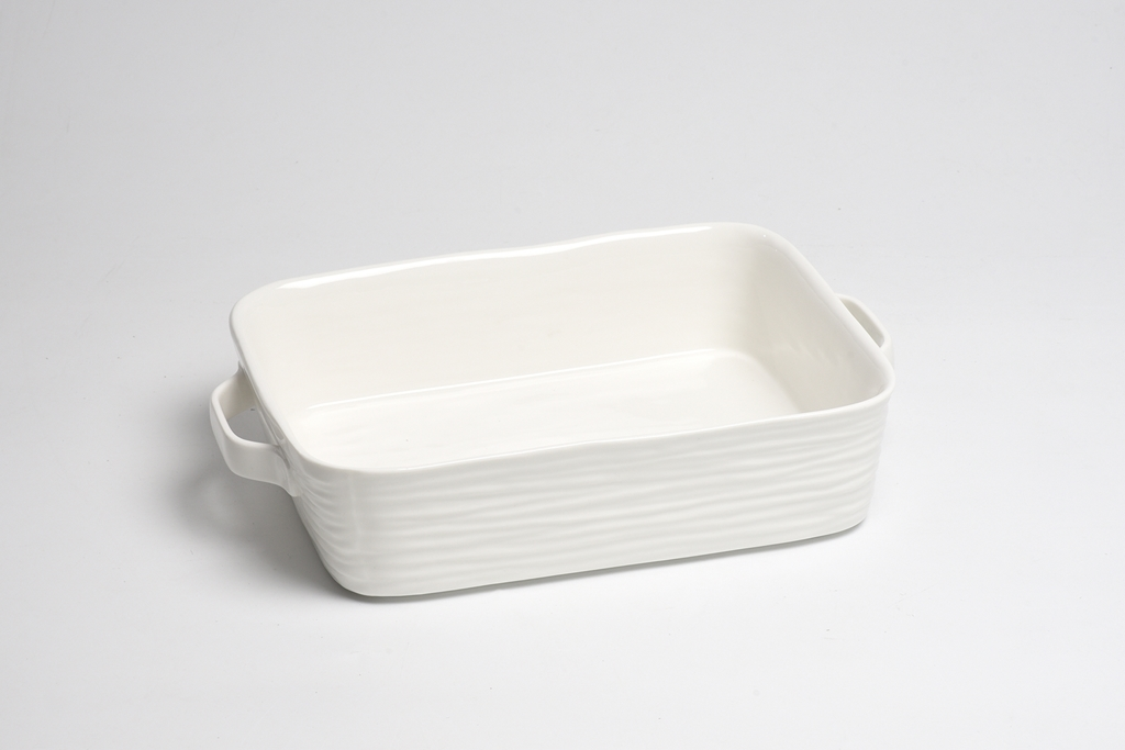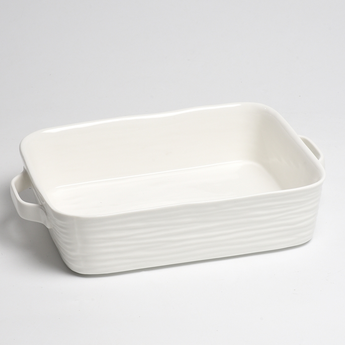 11″ x 9″ Rectangular Baking Dish in Le Blanc. Impress with your culinary skill and presentation by serving up delicious entrees or pastries in this elegant dish. Versatile high-fired porcelain pieces that are microwave safe! Beautifully crafted with clean lines and organic shapes. Food safe, tarnish free, dishwasher safe, oven safe to 500°. Easy Care.
