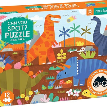 The Dino Park Can You Spot? Puzzle from Mudpuppy is just the right level of challenge for children ages 2+ and is a fun indoor activity for hours of puzzling fun.