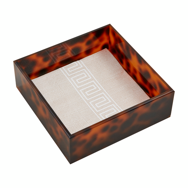 Elevate your entertaining experience with this elegant Tortoise Cocktail Napkin Holder set. This sophisticated 2-piece set includes a pack of 12 premium paper cocktail napkins, perfectly complemented by a stylish tortoise acrylic caddy. The napkins, measuring 5" x 5", are designed to add a touch of class to any gathering, while the caddy, at 6" x 6", provides a chic and functional way to keep your napkins organized and easily accessible. Crafted from high-quality acrylic, the caddy boasts a timeless tortoise pattern that seamlessly blends with any decor, making it an ideal addition to your home bar or dining table. Whether hosting a formal event or a casual get-together, this set is sure to impress your guests and enhance your hosting prowess.