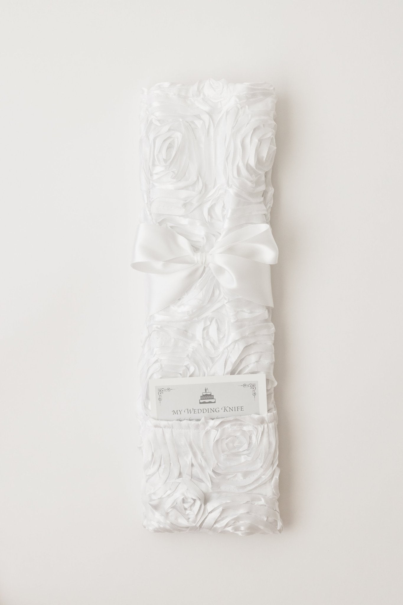 The Rosettes White Wedding Knife, from our exclusive Wedding Knives Collection, is a beautifully crafted keepsake, perfect for your wedding day. Its elegant design and lasting quality make it an ideal symbol of love and commitment, treasured for years to come.