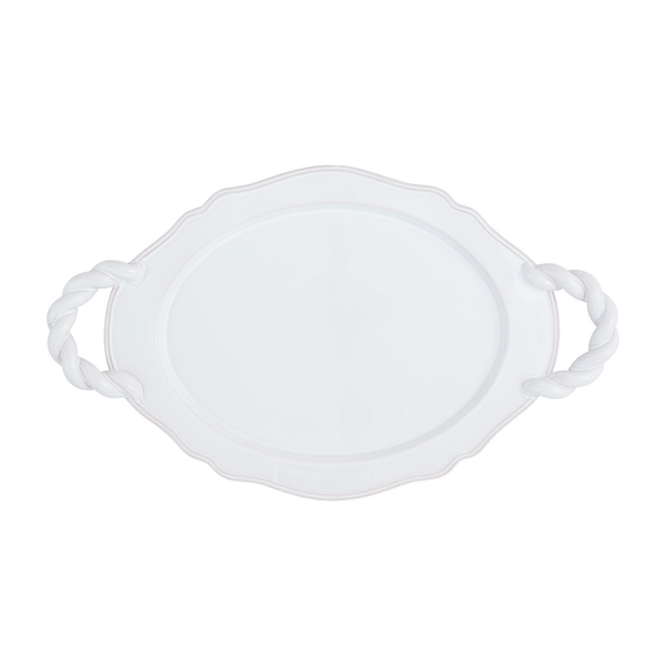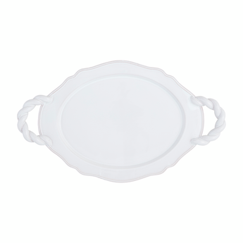 The Twisted Handle Ceramic Platter is a stunning piece crafted from high-quality glazed terracotta, offering both durability and elegance. Its generous dimensions of 13 1/2" x 20" make it perfect for serving a variety of dishes, from appetizers to main courses. The unique twisted side handles not only add a touch of artistic flair but also provide a comfortable grip for easy handling. This platter's earthy terracotta finish brings a warm, rustic charm to any table setting, making it an ideal choice for both casual gatherings and formal occasions. Whether used for serving or as a decorative centerpiece, this platter is sure to impress with its blend of functionality and style.