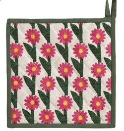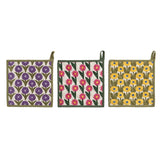 Add a touch of style to your kitchen with these 8" square cotton slub printed pot holders. Available in 3 different styles, these pot holders are not only functional but also decorative. Made from durable cotton slub fabric, they are perfect for protecting your hands from hot pots and pans. The vibrant prints will add a pop of color to your kitchen decor. These pot holders are machine washable for easy care and maintenance. Make cooking and baking more enjoyable with these stylish and practical pot holders that are both functional and fashionable.
