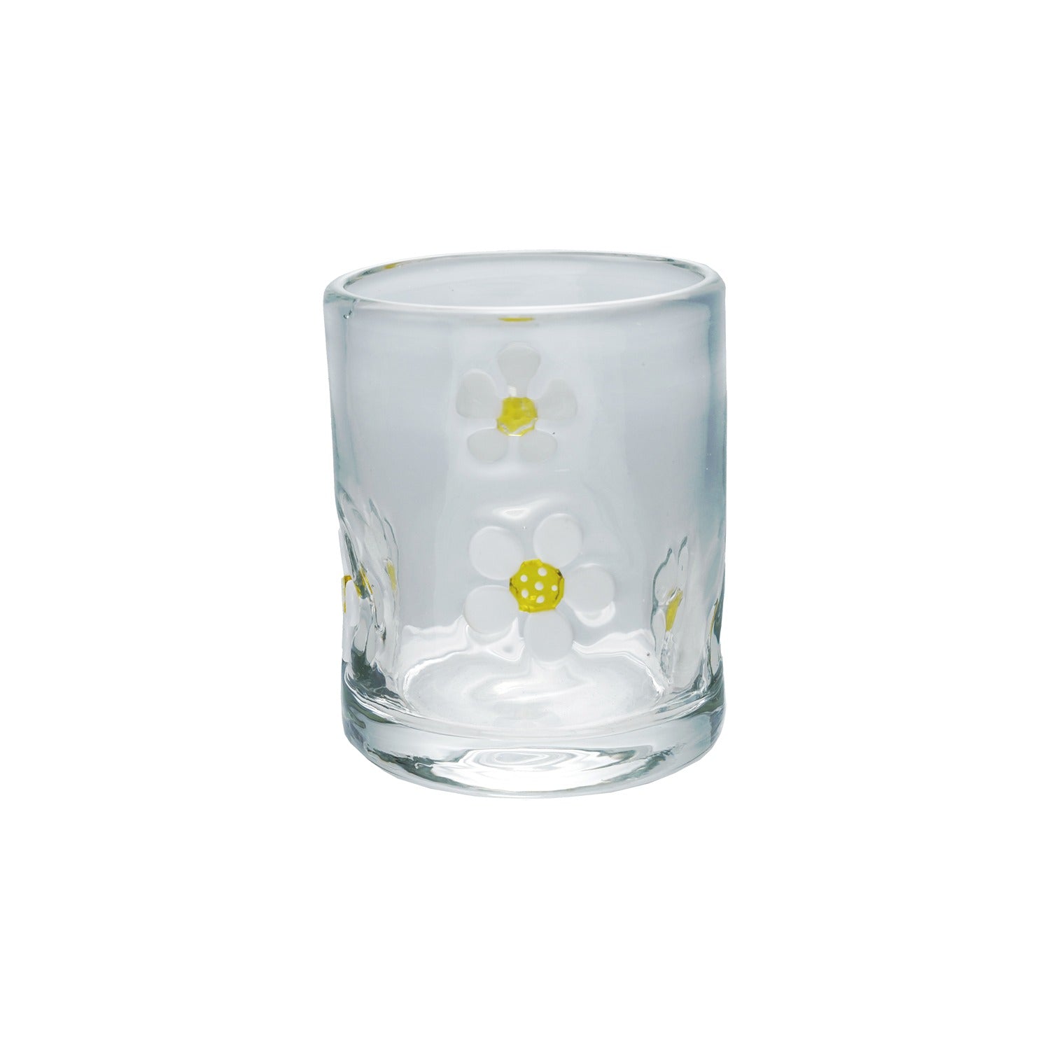 This charming 3" round 10 oz. drinking glass is a delightful addition to any table setting, featuring embedded daisies that add a touch of whimsy and elegance. Perfect for serving your favorite beverages, its compact size makes it ideal for everyday use or special occasions. Crafted from high-quality glass, this durable and easy-to-clean glass is a lovely way to add floral beauty to your drinkware collection. Enjoy a touch of nature with every sip with this beautiful daisy-adorned drinking glass.