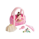 7-piece set. Plush ballet bag holds plush ballerina doll, flower bouquet, mirror, white and mesh tutus and stretchy crown for the child to wear.