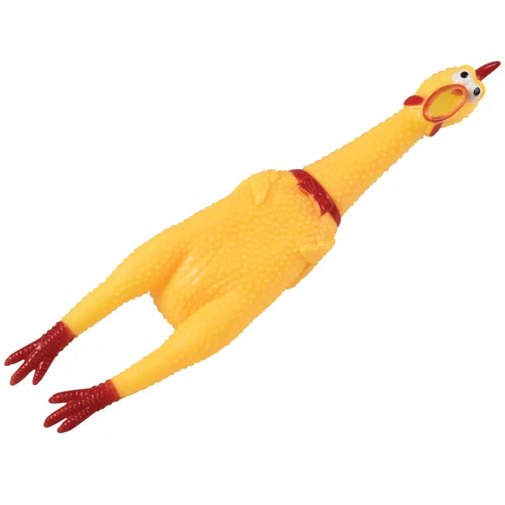 Give this goofy rubber chicken a squeeze for a loud squawk. Sure to make everyone laugh!