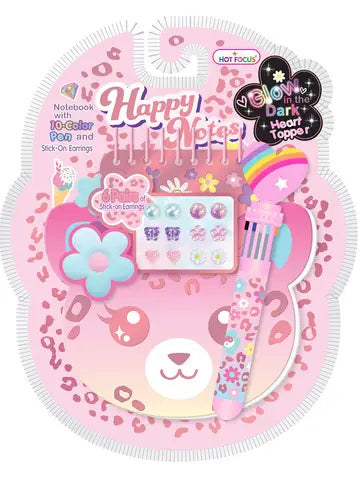 This cute, shaped journal set is perfect to write those special notes with style! Contains: 1 Novelty Notebook 1 (10 -in-1) Pen with Glow in the Dark Topper 6 Pairs of stick on earrings