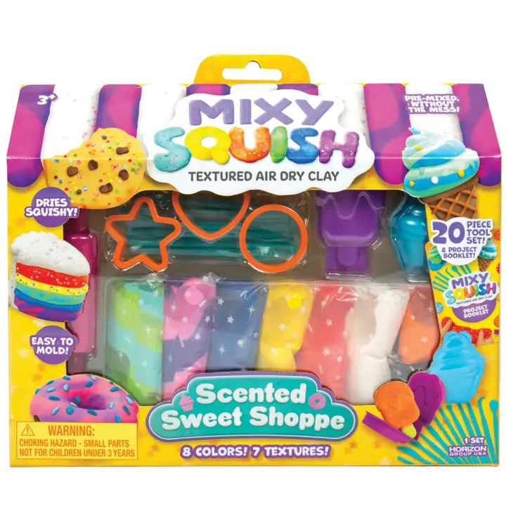Transform airy, fluffy clay into a world of sweet-smelling treats with the Mixy Squish Scented Sweet Shoppe!